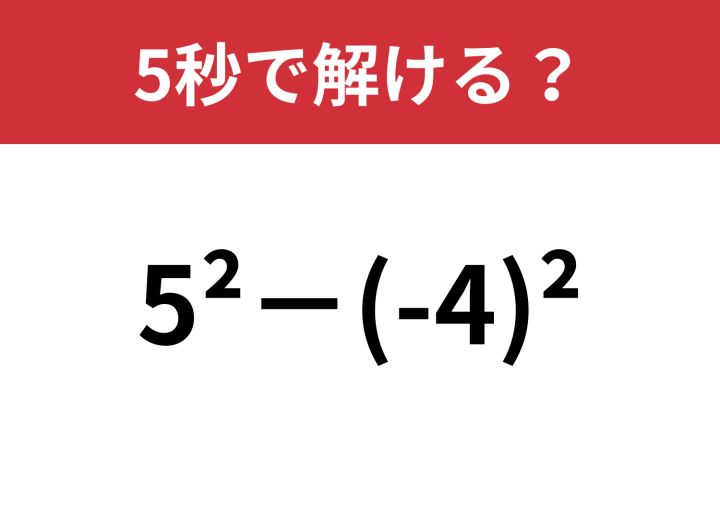 見たことはあるけど解けない人が多い!?「5^2−(-4)^2」5秒で解ける?