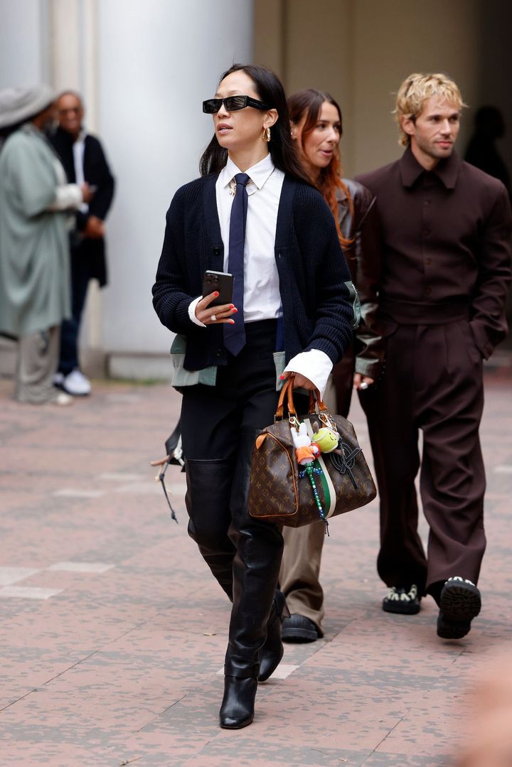 3. サンローランが火付け役! 2025年のお仕事スタイルに取り入れたい、マニッシュなシャツタイの着こなし【SNAPに見る今日のスタイルヒント】