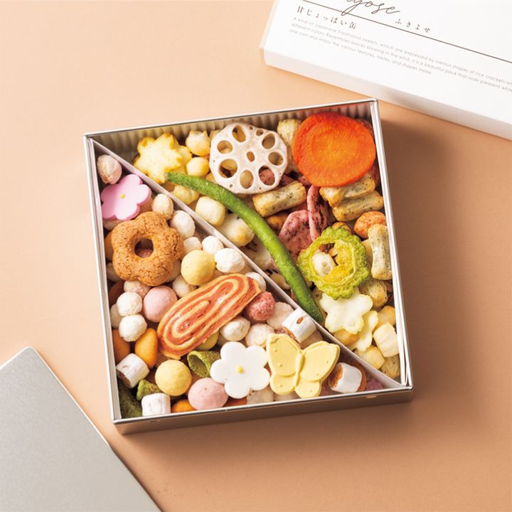 かりんとうやあられなど、カラフルなお菓子がぎっしり詰まっている、見た目も華やかな逸品。甘党の人も辛党の人も一緒につまめるので、贈る人を選ばないのも秀逸!