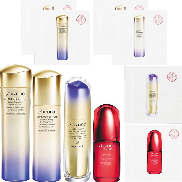 上半期ベスコス美容液も試せます!SHISEIDO バイタルパーフェクション ブライトリバイタル ローション エンリッチド、同 エマルジョン エンリッチド 各2包、L ディファイン ラディアンス ナイトセラム 1包、アルティミューン™︎ パワライジング コンセントレート IIIn 1包