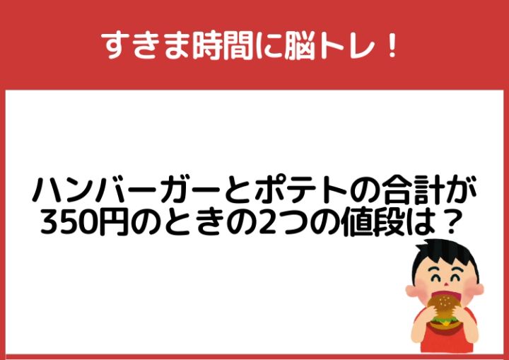 3. すきま時間に脳トレ!「ハンバーガーとポテトの値段の合計が350円のときの2つの値段」は?