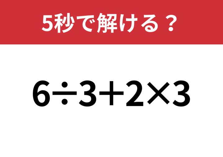 簡単そうだけど、意外と間違える人が多いかも?「6÷3+2×3」5秒で解ける?
