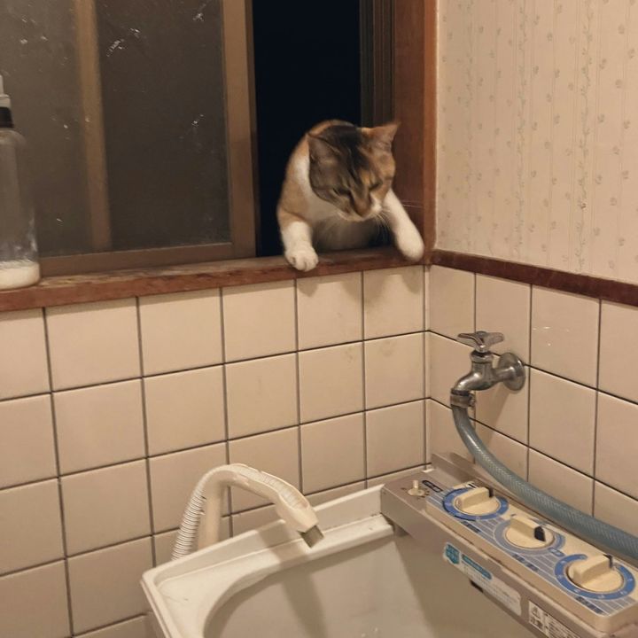 「ただいま~!」ピョーン帰宅したニャンコに6.5万いいね!「昭和を思い出す」「洗濯機懐かしい」
