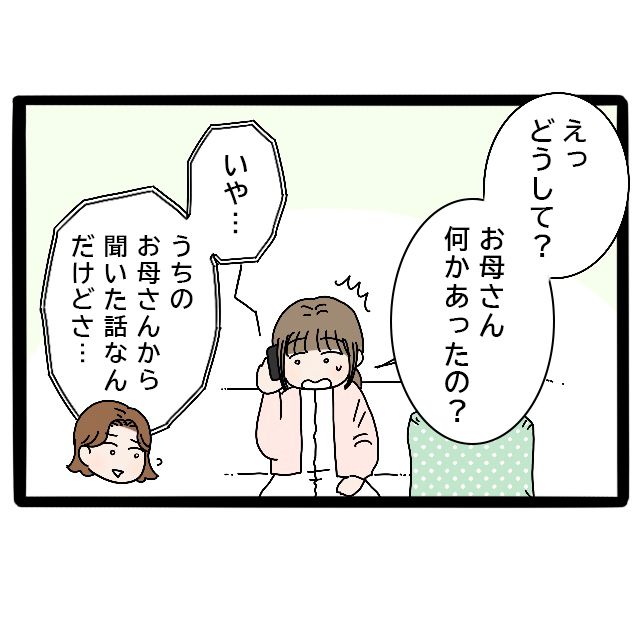 実家がおかしいと地元に住んでいるいとこのよっちゃんに相談したカオリさん、「みずほと話した?」と聞かれ、「うん・・話したけど先輩抜け殻みたいになってて・・」そう答えると「そっか・・私も何度か話したけど全然ダメ。あの子全く弱音吐かないもん。・・ねぇカオリ」とよっちゃんが言いました。