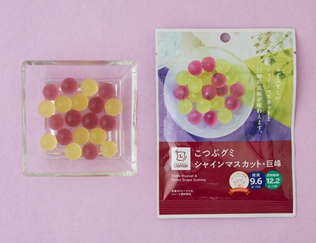 『LAWSON(ローソン)』の「こつぶグミ シャインマスカット・巨峰」は、少しかためなぷにぷに食感のグミ。素材の風味が優しく口の中に広がるのが特徴です。糖質は9.6gと少なくダイエット中でも安心。ひと粒が小さいからとついつい食べ過ぎてもカロリーのとり過ぎを防げますね♪