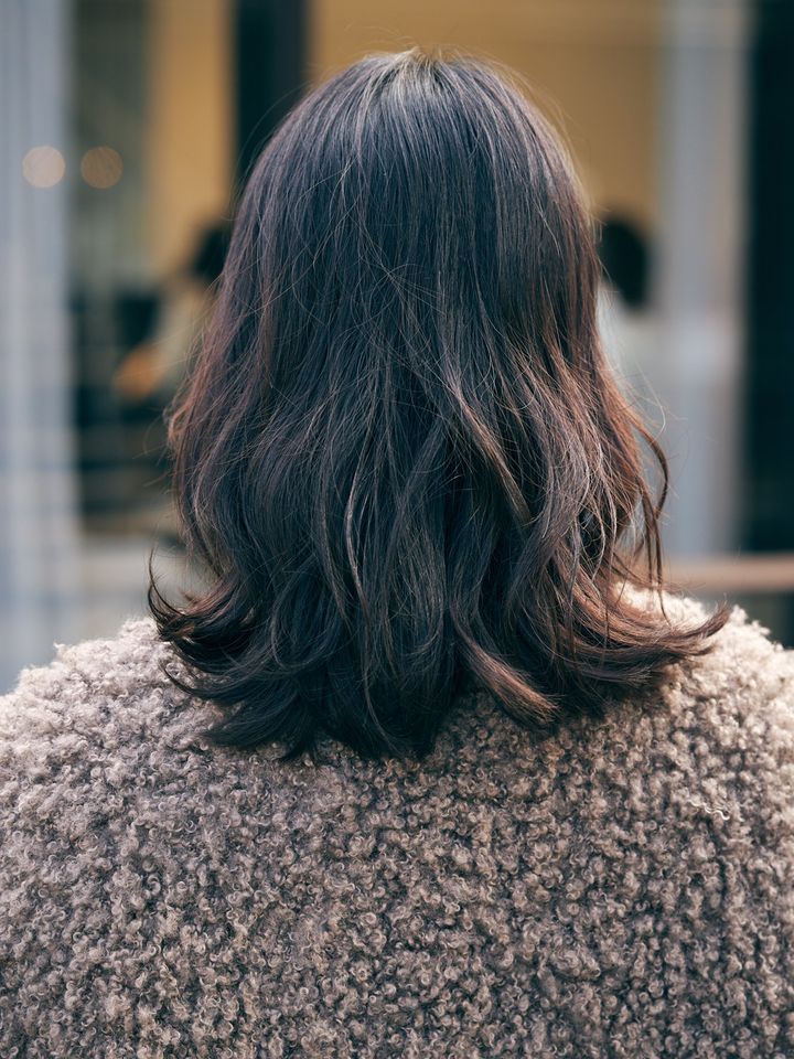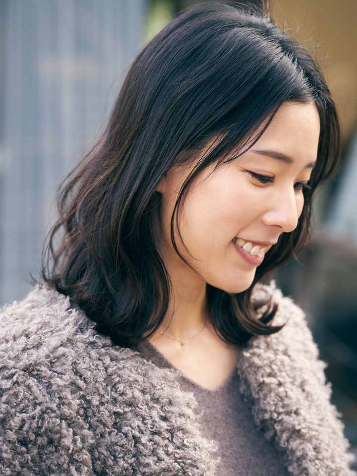 「短すぎるとセットが大変なので、鎖骨くらいの長さでまとめ髪もできるようにオーダーしています。セットは巻いたあとキープしてくれるアリミノ ダンスデザインチューナーを全体に付けるところからスタート。マグネットへアプロ カールアイロンで外ハネにワンカールし、顔まわりと前髪は内巻きにしています。最後にオースキンアンドヘアのオー・バームを全体にもみ込み、残ったバームで前髪を整えると、ツヤと束感が長時間持つのでおすすめです」川崎里奈さん/会社員(6歳と3歳の女の子ママ)