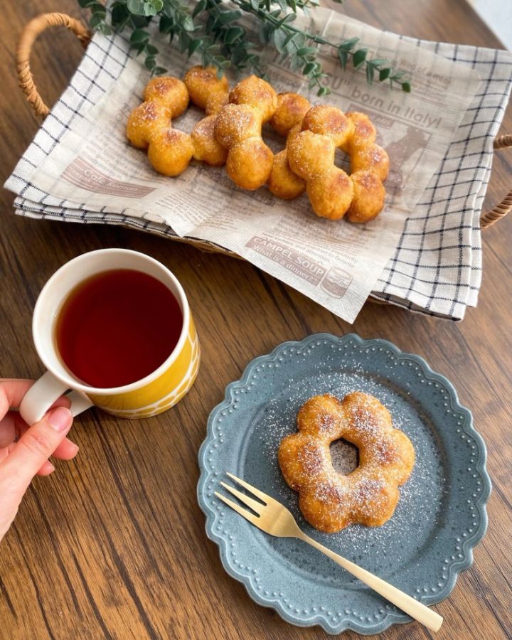 お餅はスイーツレシピにも大活躍!@hacchi_kurashiさんの切り餅を使ったもちもちドーナツは、甘さ控えめの優しい味わいで、ちょっと一息つきたいときのお供にぴったりです♡ホットケーキミックスを使用しており、複雑な工程はなし!ぜひお子様と一緒に作ってみてくださいね。