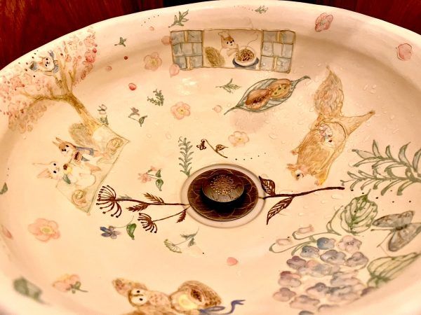 Suzuさんのお手洗い前の手洗鉢もつるばみやさんの作品です。