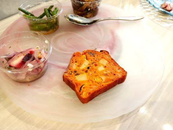 イートインではケークサレ(200円)も。温かいお料理は温めて提供してくださいました。