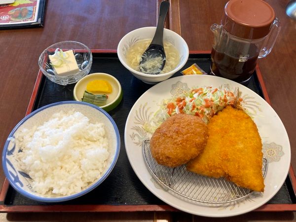 アジフライは肉厚で大きめ、同行者によると、食べ応えもかなりあり、お腹も満たされたとのことです。 副菜とスープもついて、栄養バランスもコスパも良いです。