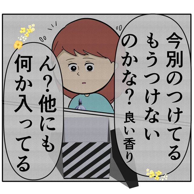 「今別のつけてる。もうつけないのかな?良い香り」箱から漂う香りを感じながら「ん?他にも何か入ってる」と何かに気付いためいさん。