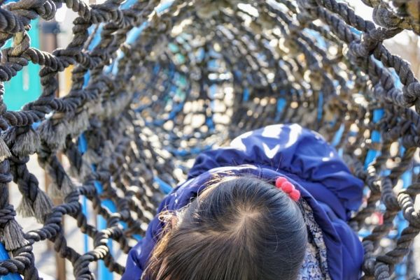 こちらのロープは、5歳の娘でも歩いて通れない程の狭さ。歩けないなら登りながら渡ると決めたようです。自分で考えて、挑戦するようになったなんてすごいなぁと感心。