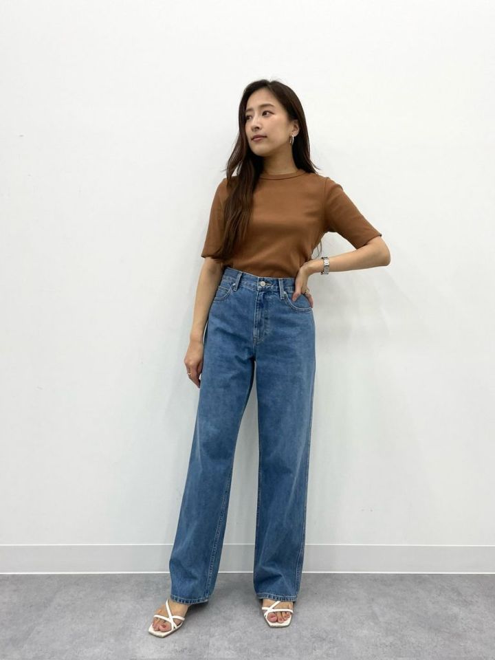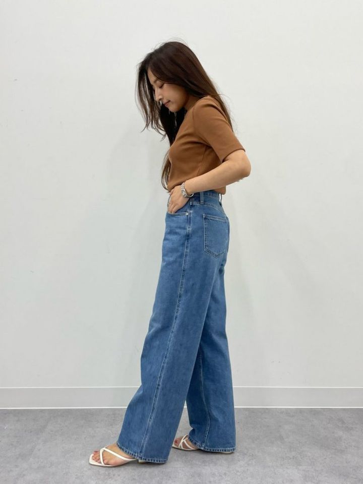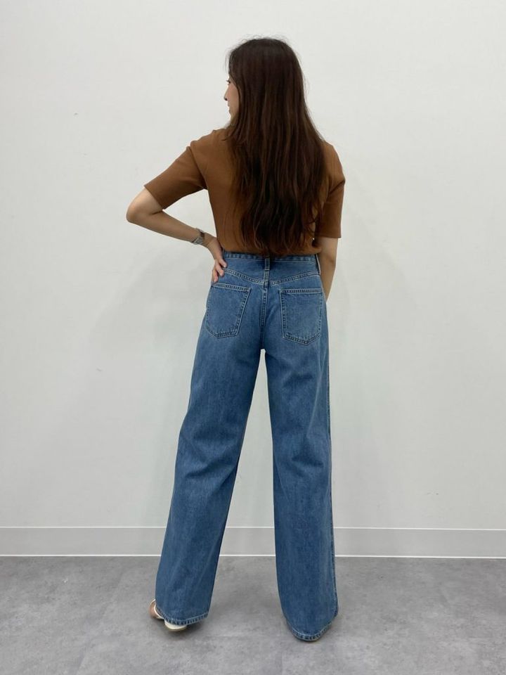 ほどよい重さで穿きやすい、コットン100%のデニムを使用。脚を長くキレイに見せてくれるミドルライズで、着こなしの幅がグッと広がります。ヒップ部分のポケット位置が高く、後ろ姿まで脚がスラッと長く見えるデザインです。