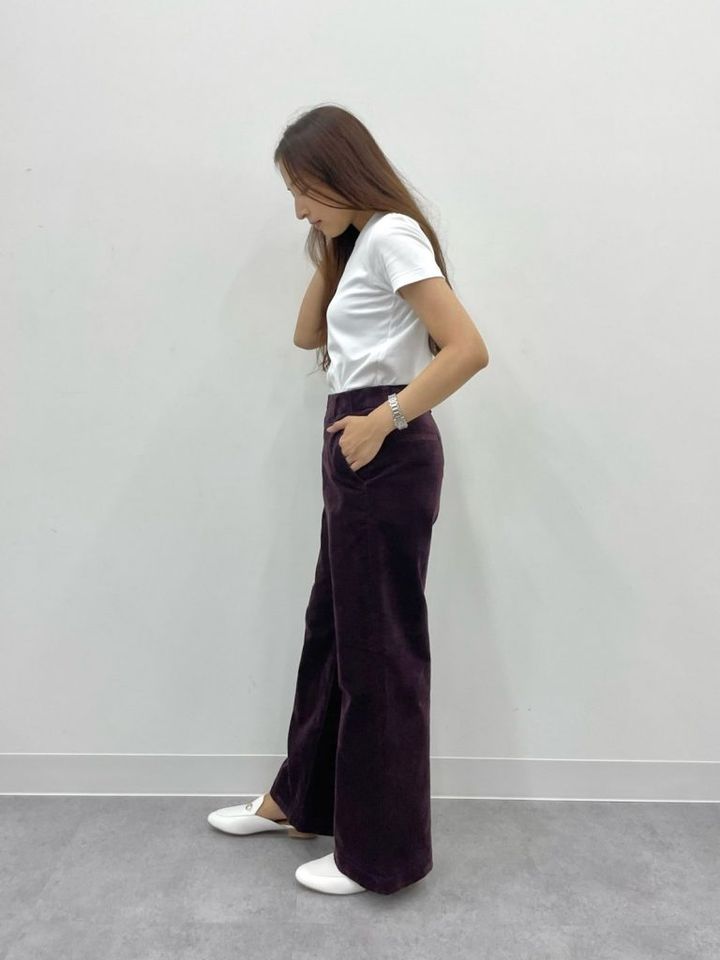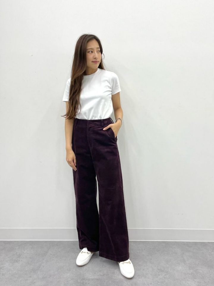 ハイウエストかつ、絶妙なワイドシルエット。しなやかな光沢感のある、ストレッチコーデュロイを使用しています。快適な穿き心地に加え、コーデュロイのラインが細く、ほっこり見えしないのが嬉しいポイント。フロントがホック仕様なので、お腹周りがすっきり見えます。