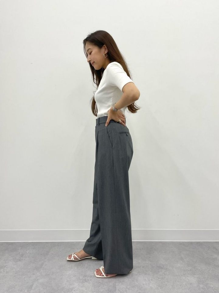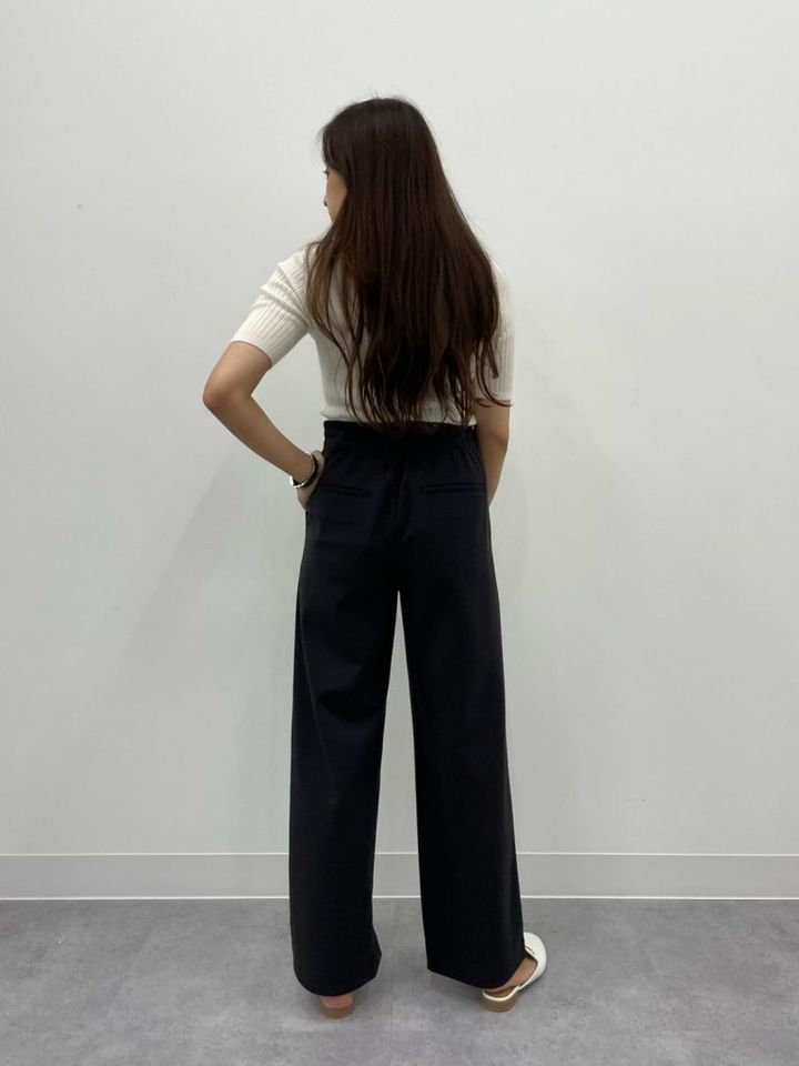 ハイウエストとほどよいワイドシルエットで、どんな体型の人でも着用しやすいデザイン。ウエストから伸びるセンタープリーツが脚をまっすぐキレイに見せてくれます。ギャザーのないすっきりとした腰まわりで、腰から脚までどこから見ても美シルエット!縦横に伸びる2WAYストレッチ素材のため、穿き心地抜群です。