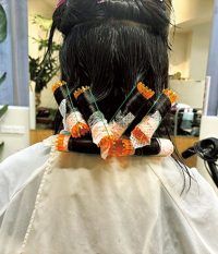 裾は外巻きワンカール。ハチ上は内巻きワンカールに。レイヤーを上手く使った大きなS字は乾かすだけでふんわりします。