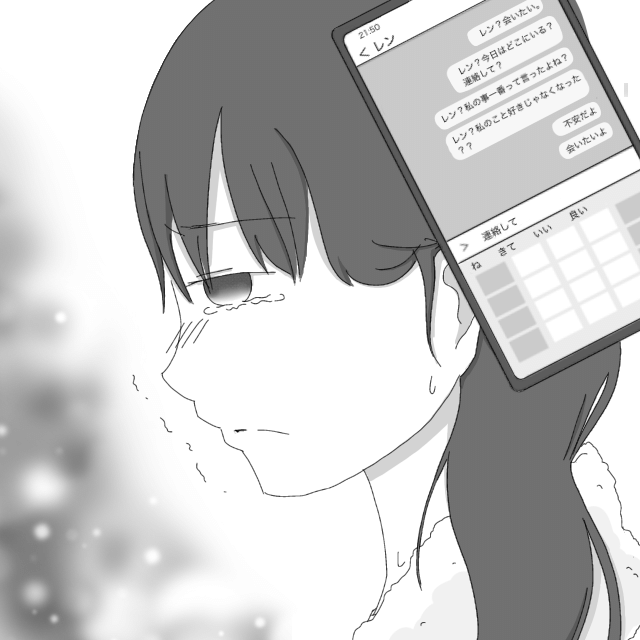 シャワーを浴びたミカは、「レン?今日はどこにいる?連絡して?」「レン?私のこと一番って言ったよね?」「レン?私のこと好きじゃなくなった??」何度も何度もレンにメッセージを送りました。