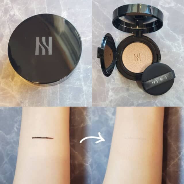 ▲HERA「ブラッククッションファンデーション」 全7色(写真は21C1) 各¥6,380(税込)。下写真のようにウォータープルーフのアイラインをしっかりカバーできます
