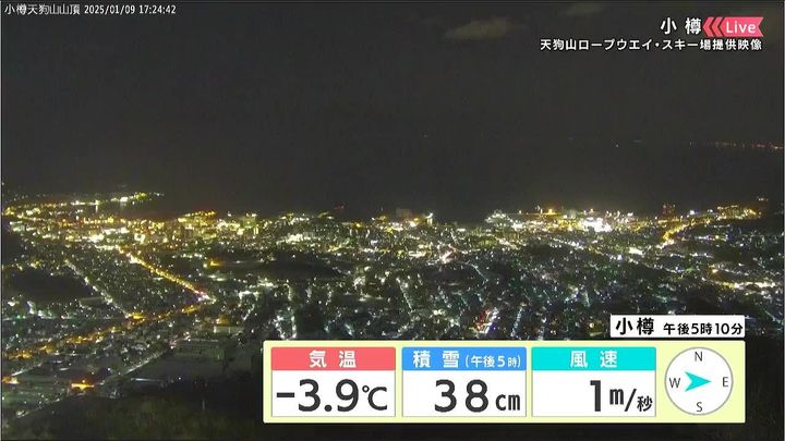 背景は9日午後5時10分ごろの小樽情報カメラ