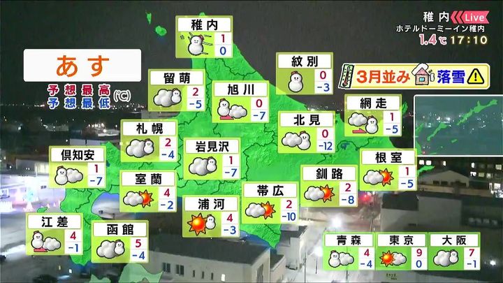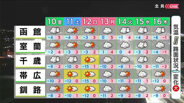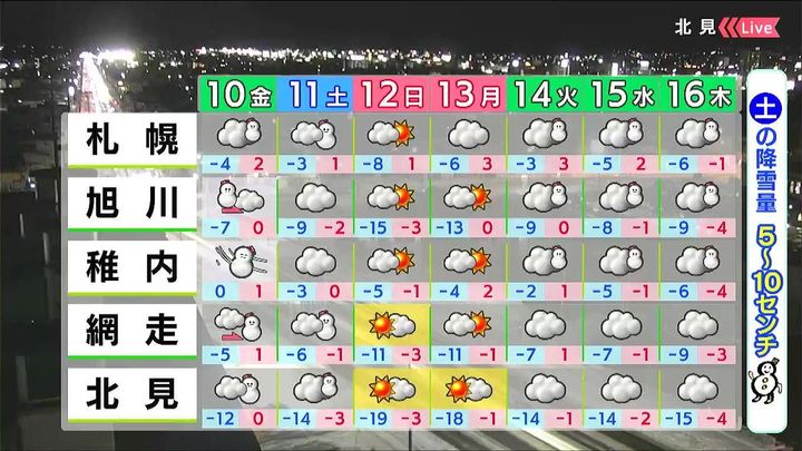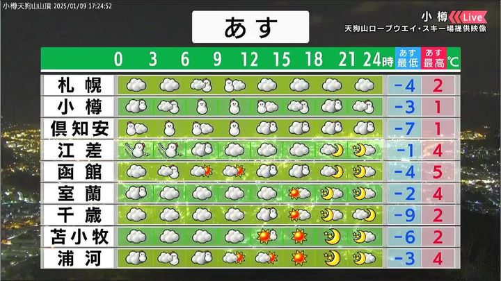 北海道のあす1月10日(金)の天気と、週間予報を、HBCウェザーセンターの児玉晃(こだま・あきら)気象予報士がお伝えします。