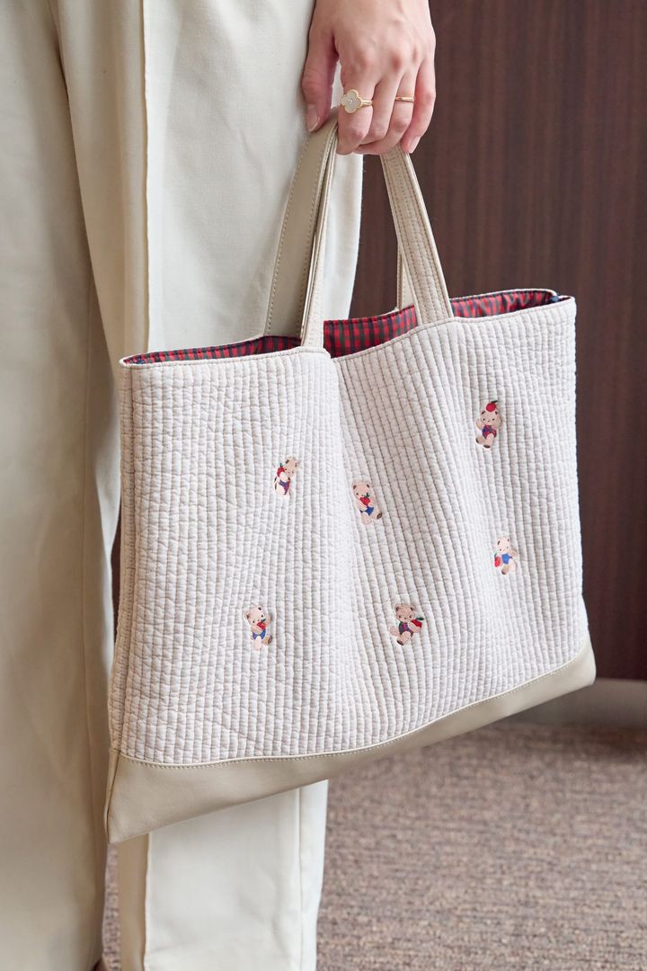 「子どもの成長とともに大きなサブバッグが必要なくなり、ちょうどいいサイズのものを探していたところに出合ったラブラリー バイ フェイラー。可愛いクマのデザインと、洗える素材、底の部分が青で汚れが目立ちにくい点が購入の後押しになりました。最近アンパンマンブームの息子からチャームをカバンにつけてほしいとリクエストをもらい…だんだん増えていきますが(笑)、そういう意味でもシンプルなデザインのバッグを選んでよかったです」山下貴子さん/39歳・161㎝・主婦(2歳の男の子ママ)