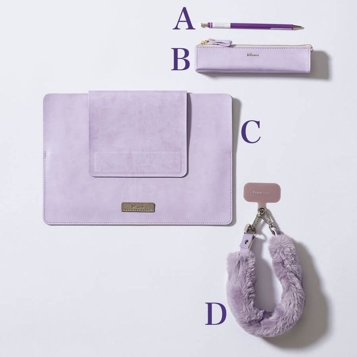 A.ラベンダーカラーのガジェットケースや文房具で大人見え