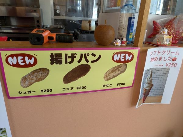 最近始めたという「揚げパン」や「ソフトクリーム」もありました。お試し価格250円のソフトクリームは、他のお客さんが食べていたのを見たら、とっても大きくて美味しそうだったので、かなりお値打ちだと思います♪