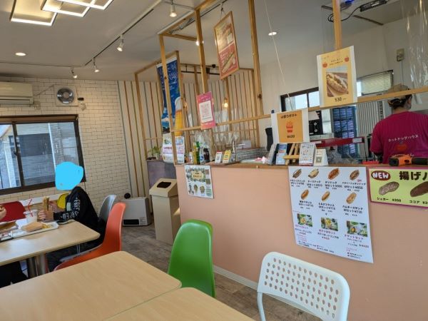 お店の名の通りホットドッグ専門店なのですが、テイクアウト専用ではなく、4人掛けのテーブルが4つもあるイートイン可能なお店なんです。冬休み中だったので、小学生くらいの親子連れが多かったですよ。