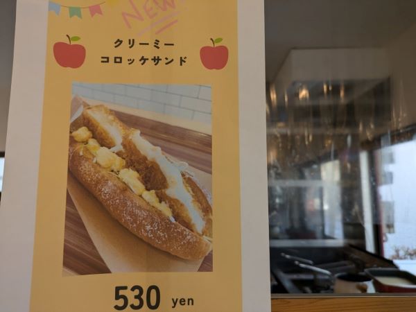 他にも月替わりのホットドッグがあり、今月は「クリーミーコロッケサンド」(530円)です。近くの福岡市立福岡西陵高等学校とコラボしたメニューを提供している月もありますよ。