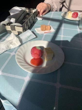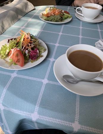 ランチは、サラダとコーヒーまたは紅茶とデザートがセットで付いています。