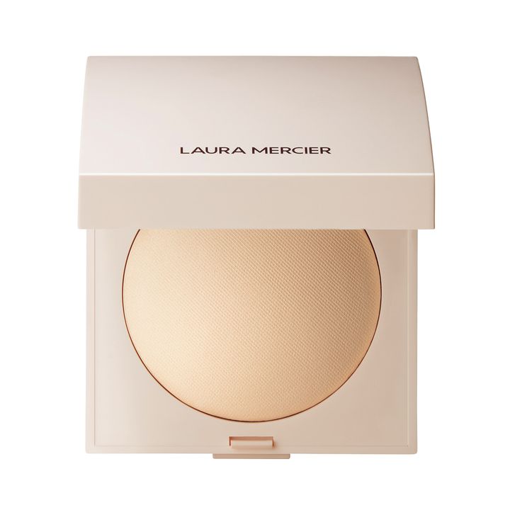 【ローラ メルシエ リアル フローレス ルミナス パーフェクティング プレストパウダー】クリーミーな質感で乾燥しがちな目周りにも◎。ツヤとトーンアップ両方叶うので手放せません! カラーはトランスルーセントを使用。7g ¥6,820(ローラ メルシエ ジャパン)(モデル・樋場早紀さん愛用)