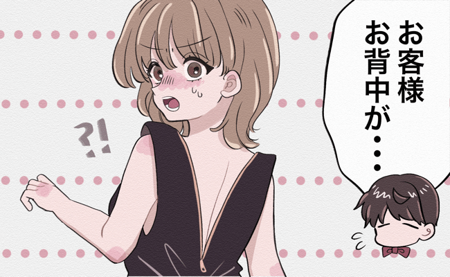 不思議に思っていると、ギャルソンが近づいてきて「お客様、お背中のファスナーが開いていますよ」と小声でひと言。まさかと思い背中を確認すると……なんとファスナーが全開だったのです。サイズが合わないのに無理やり着ていたことでファスナーが自然と開いてしまったのでしょう。いつからこうだったのかと思うと恥ずかしく、私は顔を上げることができませんでした。