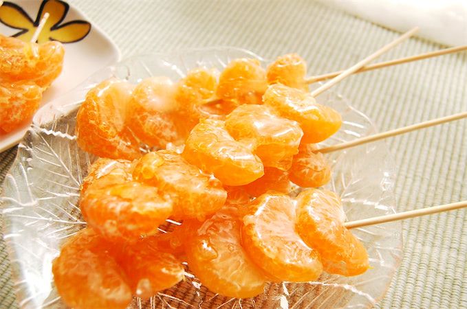 コーティングの飴はパリッパリ♪噛めば甘酸っぱい果汁はじける~♡【屋台風 みかん飴の作り方】にトライ!