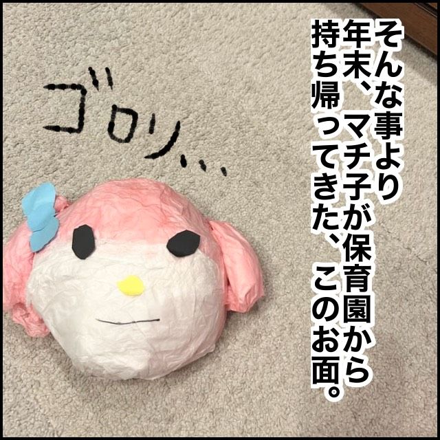 娘が保育園で作ったお面が個性的すぎて上手く説明できない。|アツアゲの育児絵日記