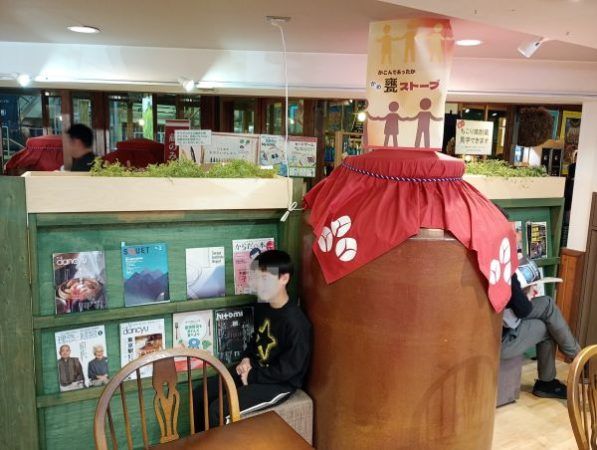 レストラン内にはちこり焼酎の甕でつくった「甕ストーブ」も!