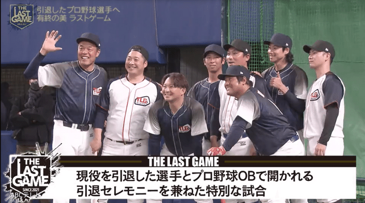 プロ野球の世界を離れる選手は、毎年100人以上もいる。その中で引退試合ができる選手は、残念ながらほんの一握りしかいない。「THE LAST GAME」は、そんな元プロ野球選手たちの引退セレモニーを兼ねた特別試合だ。2024年度のTHE LAST GAMEは、12月24日にバンテリンドーム ナゴヤで行われ、2025年1月4日にその様子がABCテレビで放送された。