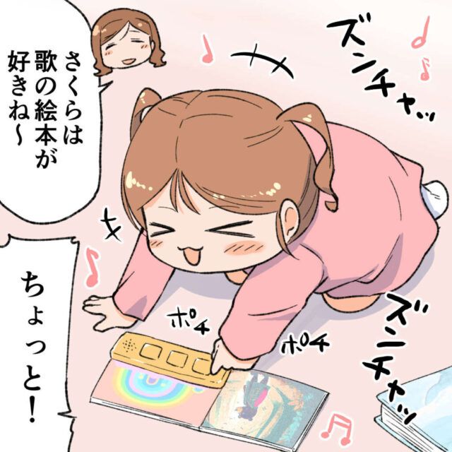 ある日のこと。音の出る絵本を取り出して遊ぶさくらちゃんを見て、「さくらは歌の絵本が好きね~」とゆきのさんはニコニコ。すると、「ちょっと!」と大きな声が聞こえてきました。