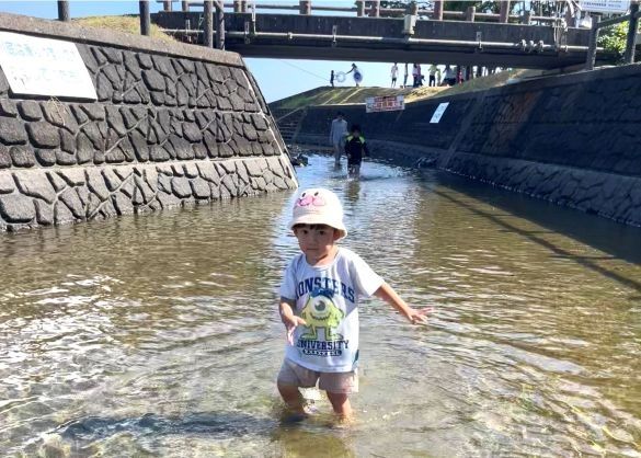 宮崎空港から高速で約1時間30分、九州の海水浴場で唯一特選の部に選ばれた下阿蘇ビーチは道の駅北浦に隣接していてキャンプ場やレストランも備えているので、夏は海水浴客やキャンプ客でとても賑わいます。夏季限定で下阿蘇川を利用した河川プールも開設され、子どもたちに大人気の場所。最も水深があるところでも2歳の息子の膝の高さほどで流れもほとんどないので、小さいお子さんでも安心して楽しむことができます。1年を通して気候が良く、離島へのシーカヤックなどのアクティビティも楽しめます。