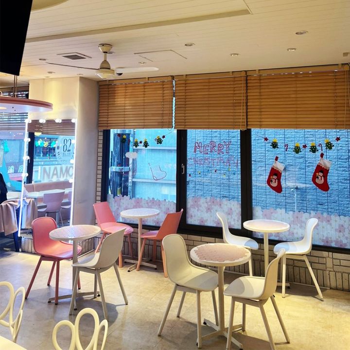 席数60席の広々とした店内は、大きな窓が開放的な映えスペース。モニターにはK-POPの映像が流れており、賑やかに楽しく過ごせます。