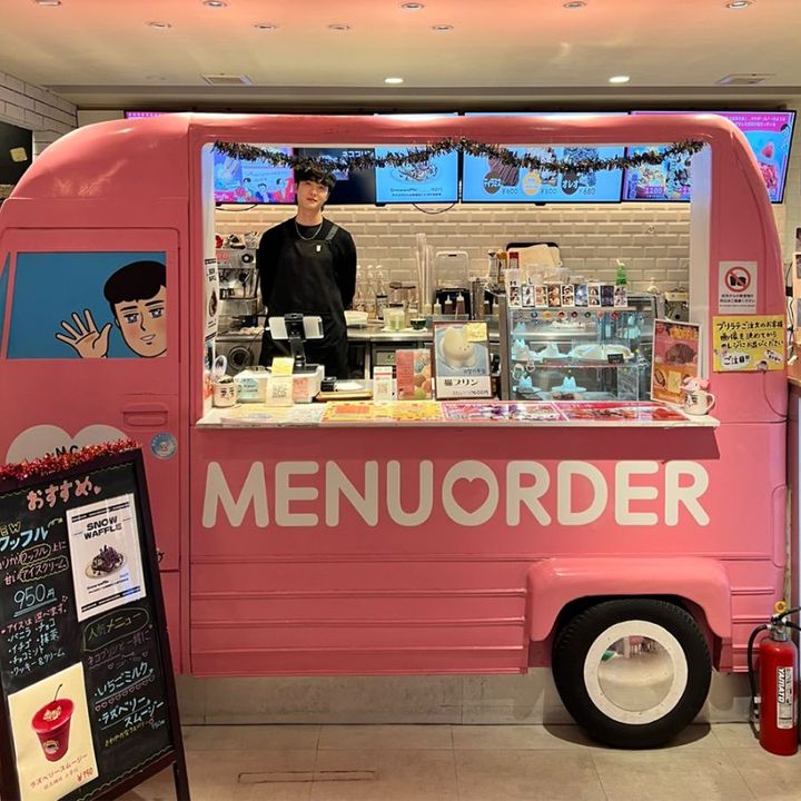 華やかなトッピングの牛乳かき氷「雪花氷(ソルファビン)」880円〜や「ハニーホットク」680円〜などの韓国スイーツと一緒に、「プリンターラテ」が味わえます。アイドルショップやカスタマイズグッズが作成できるお店が揃う新大久保にあり、周囲には推し活プランのある韓国料理店も多いので、一日を通して推し活が楽しめるのも高ポイント。