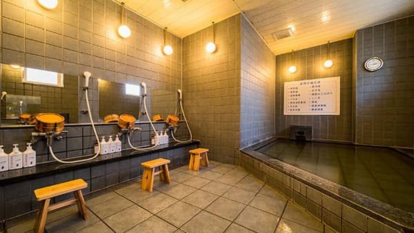 男女入れ替え制の大浴場。観光客が増える土日祝日は入れ替え時間が平日と異なるので、ホテルでチェックしてみてください。