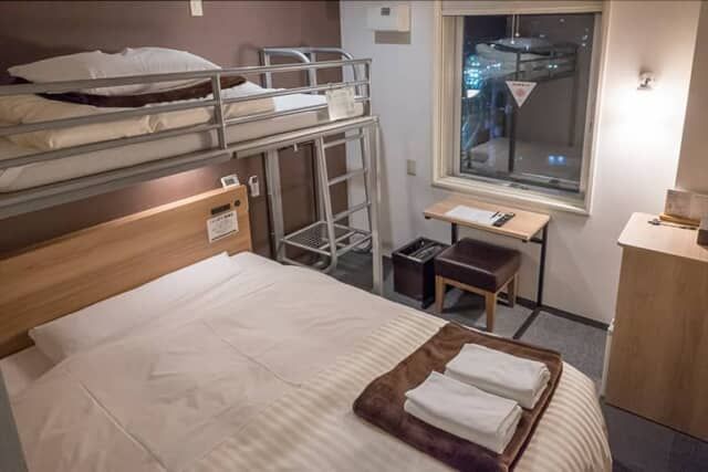 2段ベッドを備えたスーパールームは、定員が1名から3名まで。子供を連れたファミリーのお客さんに人気です。