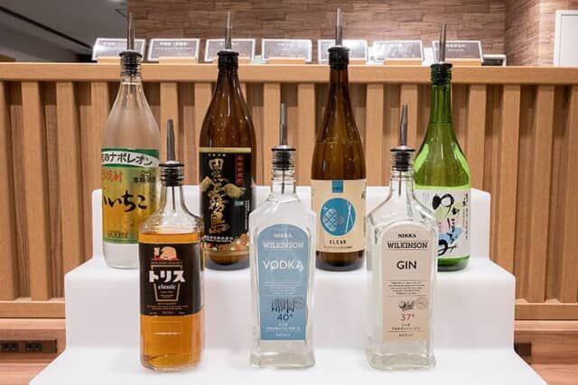 ジンや焼酎などは炭酸割りができるほか、フルーツのシロップが5種類置かれているので、自分好みのカクテルも作れます。