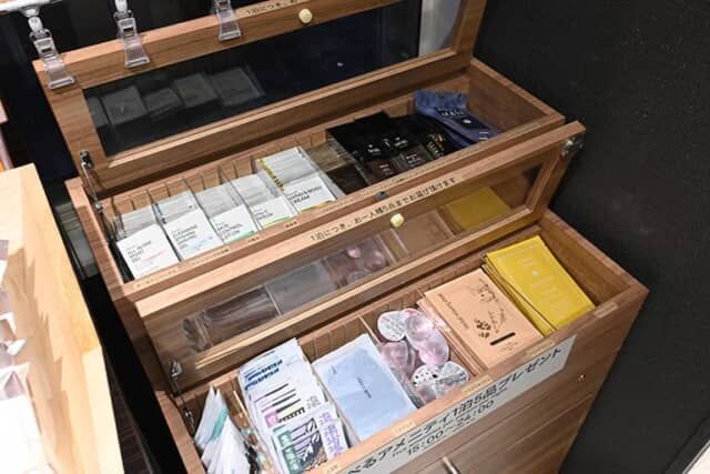 ボディータオルやカミソリなど必要なものをピックアップ。さらにオーガニックの基礎化粧品やパックなどは、5つまでいただくことができます。