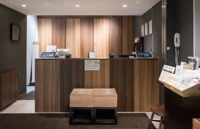 ▲2階にあるフロントは、木目調の落ち着いた設え