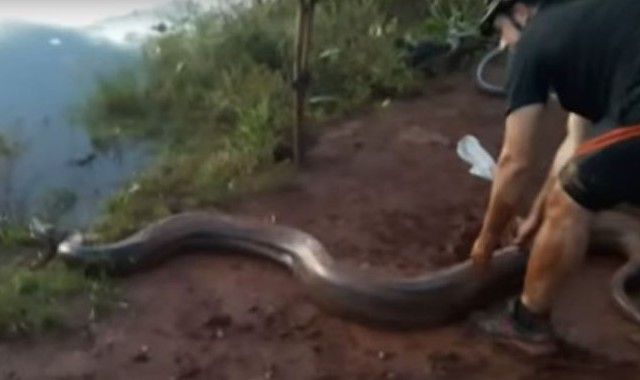 アナコンダから愛犬を救おうとする男性。 その緊迫の様子は、こちらの動画からご覧いただけます。
