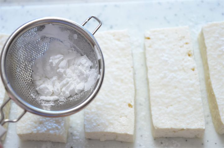 3.1の豆腐を6等分に切り、表面に片栗粉(分量外)を少々振る。