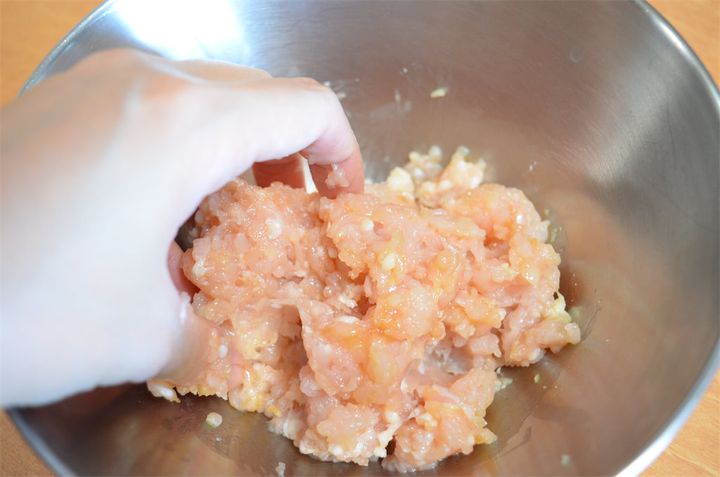 このひと手間で、鶏ひき肉が剝がれにくくなります。