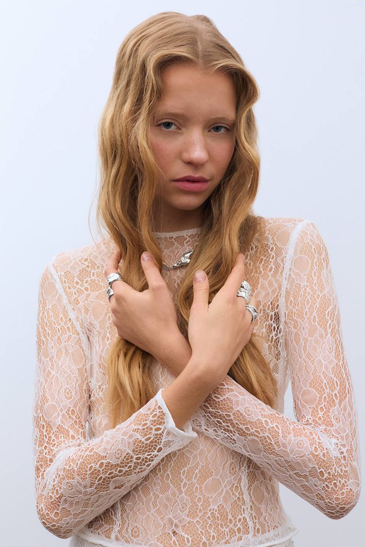 left - top by MAR GISBERT, earrings and necklace by VOLÁTIL JOYERÍAright - bra by IRO STUDIO, earrings by VOLÁTIL JOYERÍA