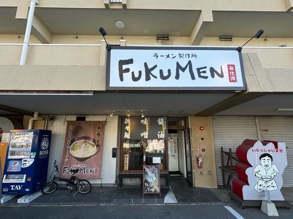 場所は福岡市南区曰佐、ホームセンターグッディ須玖店から徒歩2分ほどのところ、老舗の「べーやんラーメン」のお隣「ラーメン製作所FUKUMEN」というお店です。